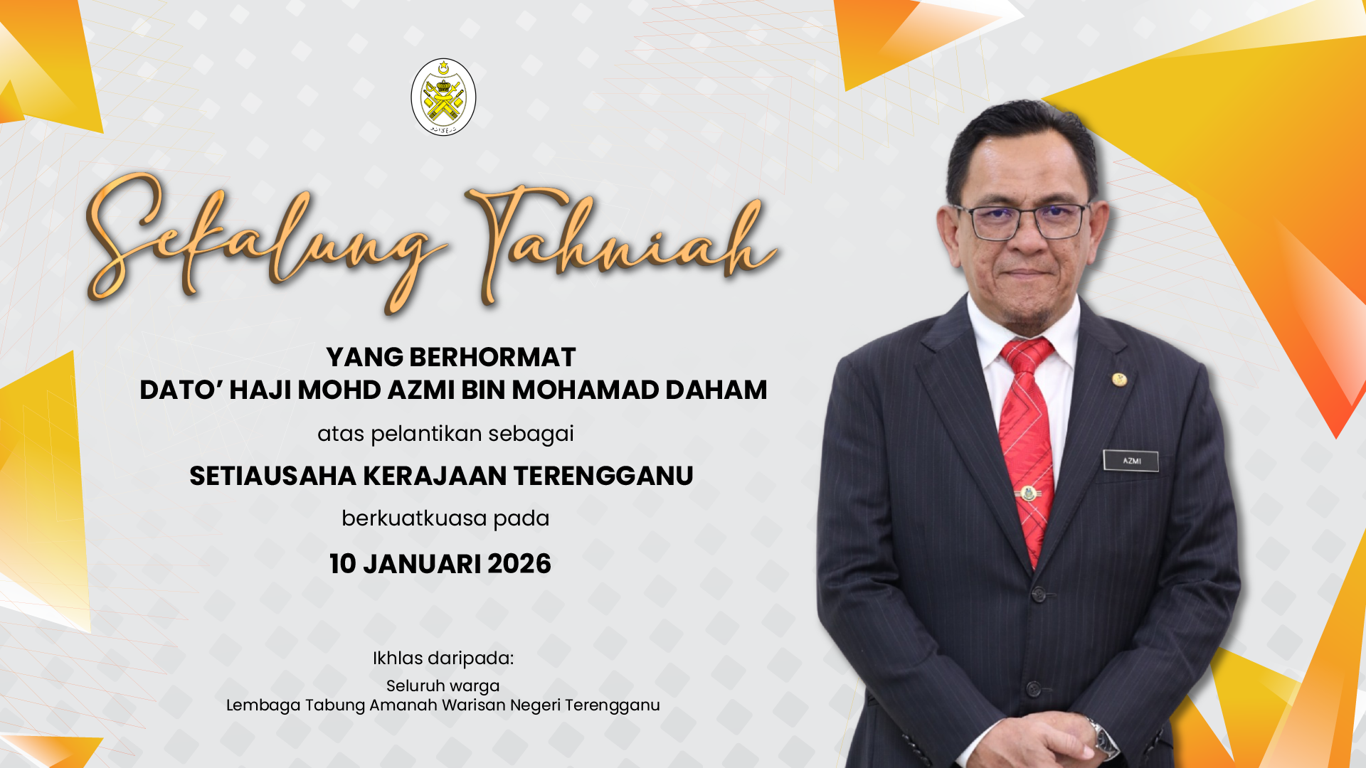 Mulai 1 Januari 2026, Cukai Perkhidmatan (SST) 8% akan dikenakan ke atas sewaan dan pajakan premis, tanah serta lain-lain sewaan milik Lembaga Tabung Amanah Warisan Negeri Terengganu (LTAWNT) selaras dengan Akta Cukai Perkhidmatan 2018